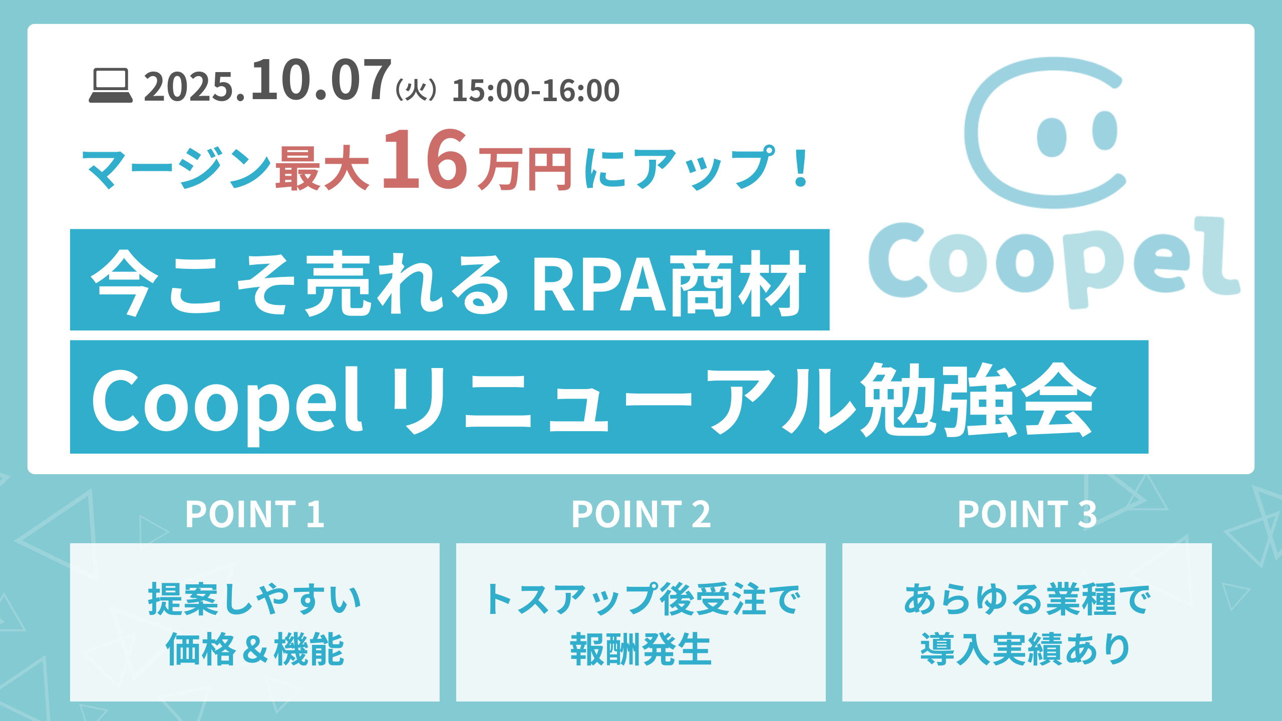 マージン最大16万円にアップ!今こそ売れる「RPA」商材Coopelリニューアル勉強会