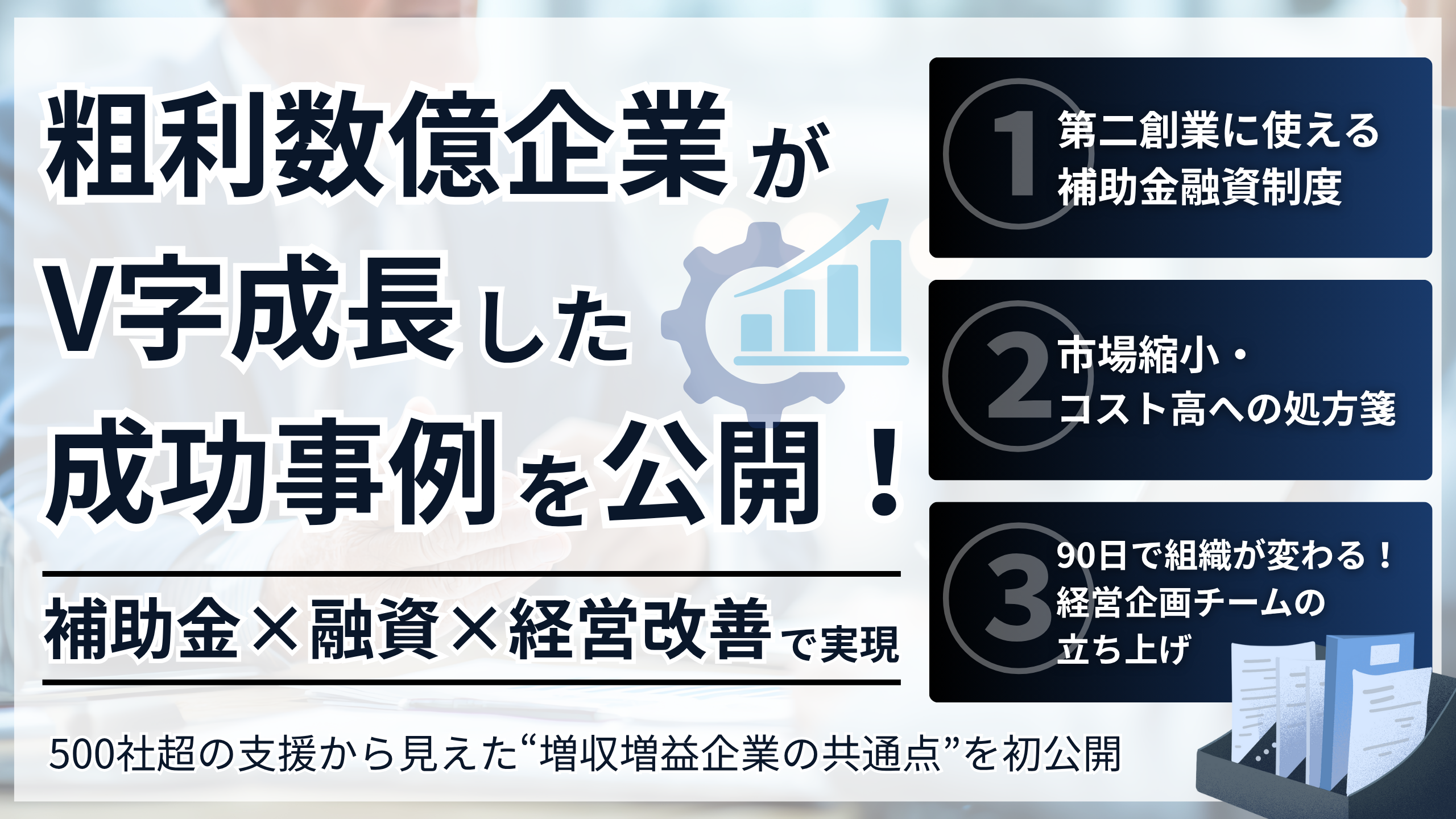 補助金と融資制度を使った粗利数億企業の増収増益事例セミナー