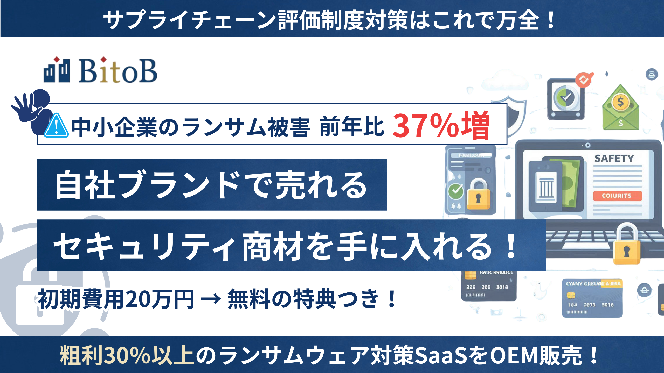 サプライチェーン対策評価制度の波に乗る 最新のランサムウェア対策を自社ブランドで販売!!粗利率30%以上のSaasビジネス