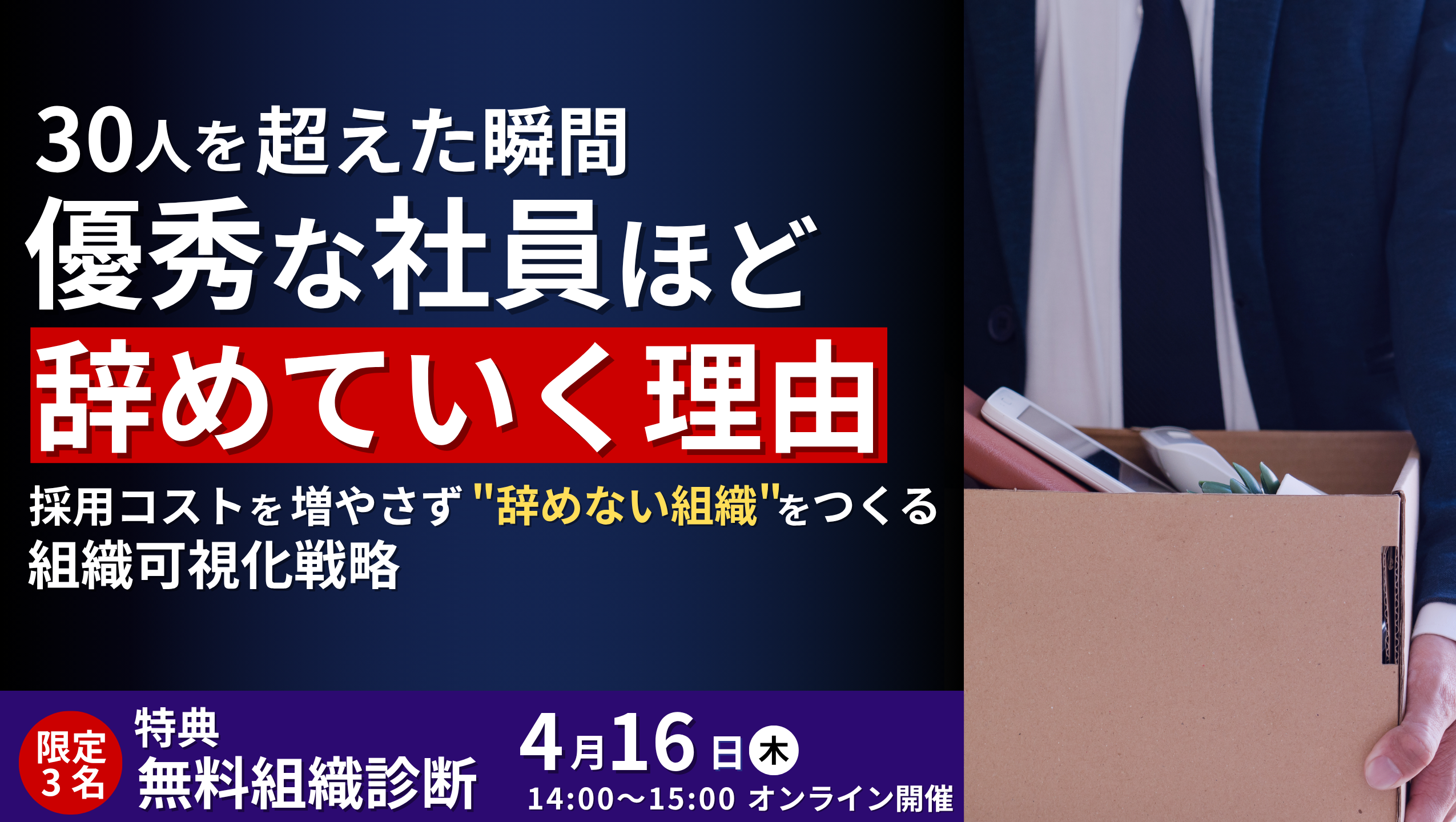 「30人を超えた瞬間、なぜ優秀な社員から辞めていくのか?」 採用コストを増やさず“辞めない組織”をつくる組織可視化戦略